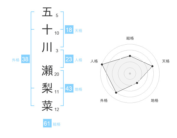 五十川 瀬梨菜さんの総格は61画の3点!