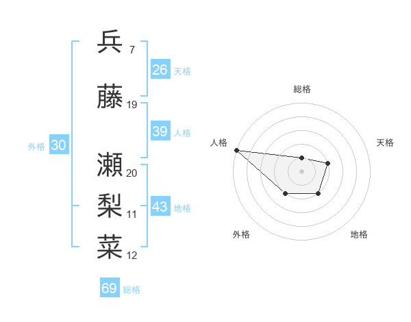 兵藤 瀬梨菜さんの総格は69画の1点!