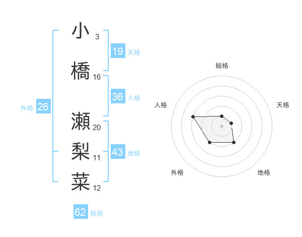 小橋 瀬梨菜さんを姓名の画数から五運を鑑定