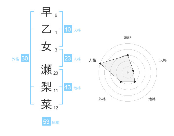早乙女 瀬梨菜さんの総格は53画の3点!