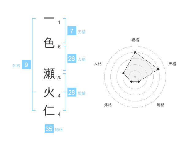 一色 瀬火仁さんを姓名の画数から五運を鑑定