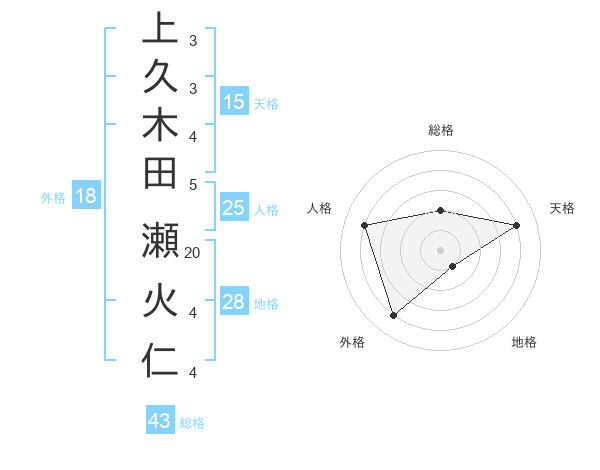 上久木田 瀬火仁さんの総格は43画の2点!