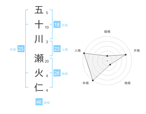 五十川 瀬火仁さんの総格は46画の1点!