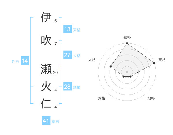 伊吹 瀬火仁さんを姓名の画数から五運を鑑定