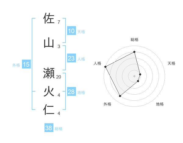 佐山 瀬火仁さんの総格は38画の4点!