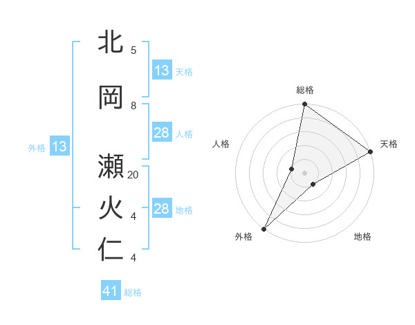 北岡 瀬火仁さんを姓名の画数から五運を鑑定
