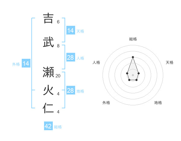 吉武 瀬火仁さんを姓名の画数から五運を鑑定
