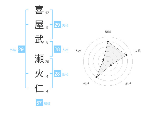 喜屋武 瀬火仁さんの天格は29画の4点!