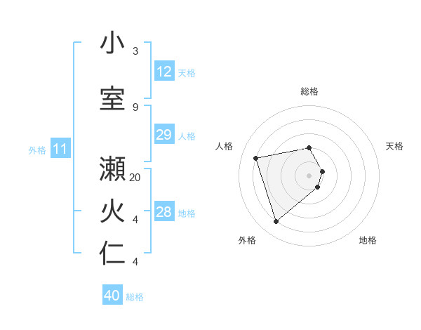 小室 瀬火仁さんの外格は11画の4点!