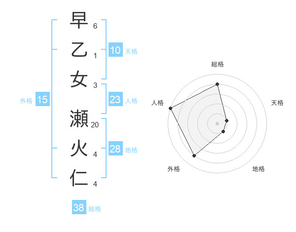 早乙女 瀬火仁さんを姓名の画数から五運を鑑定