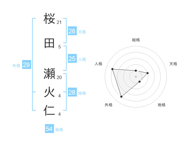 桜田 瀬火仁さんの外格は29画の4点!