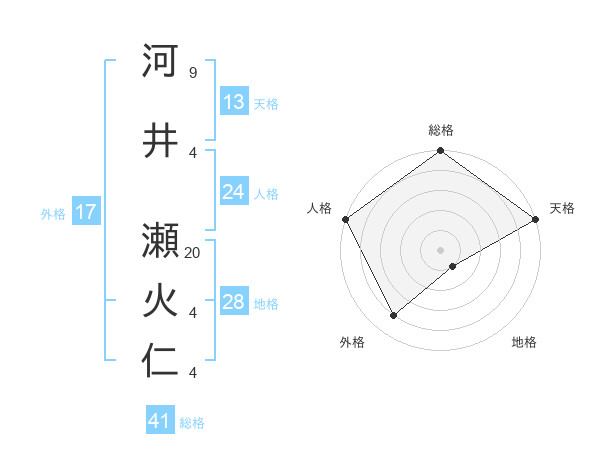 河井 瀬火仁さんを姓名の画数から五運を鑑定