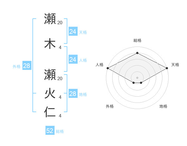 瀬木 瀬火仁さんの総格は52画の4点!