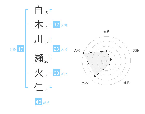 白木川 瀬火仁さんを姓名の画数から五運を鑑定