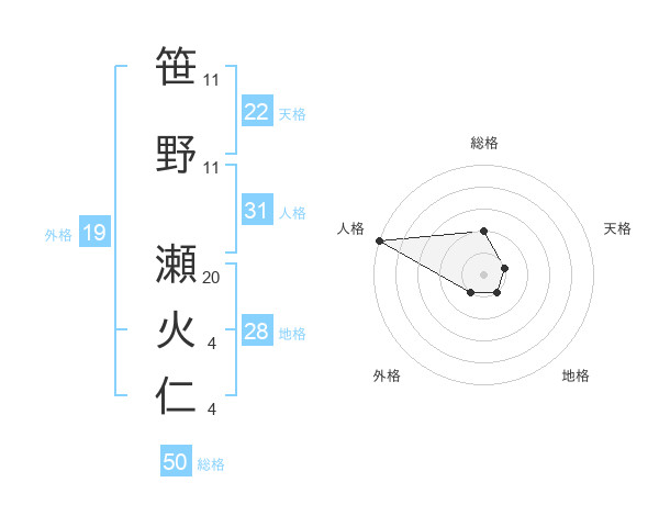笹野 瀬火仁さんを姓名の画数から五運を鑑定