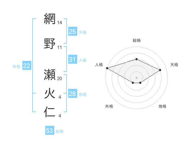 網野 瀬火仁さんを姓名の画数から五運を鑑定