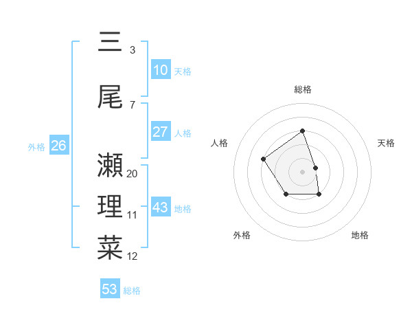 三尾 瀬理菜さんを姓名の画数から五運を鑑定