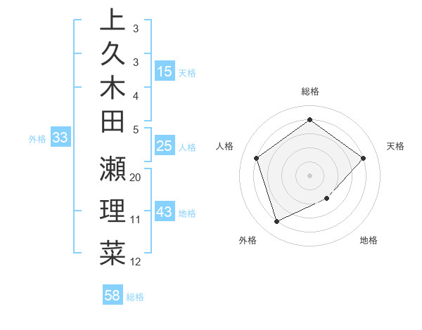 上久木田 瀬理菜さんを姓名の画数から五運を鑑定