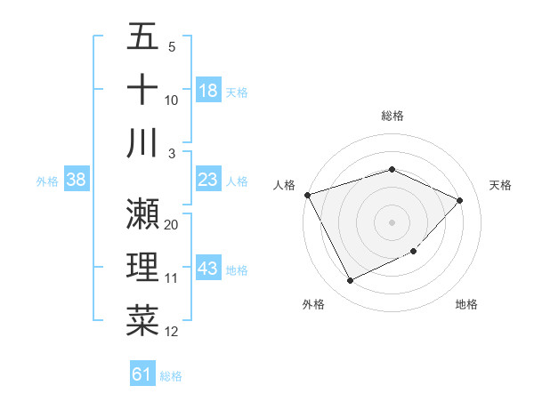 五十川 瀬理菜さんを姓名の画数から五運を鑑定