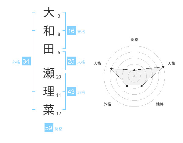 大和田 瀬理菜さんを姓名の画数から五運を鑑定