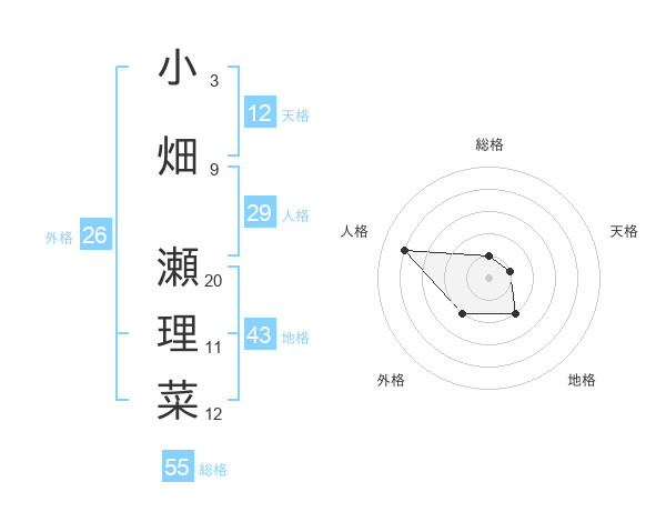 小畑 瀬理菜さんを姓名の画数から五運を鑑定