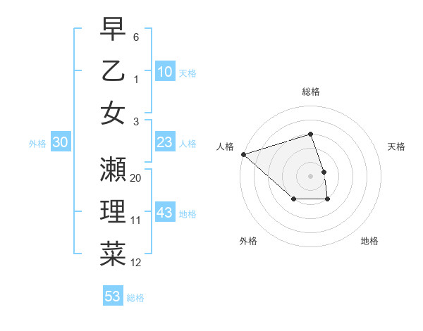 早乙女 瀬理菜さんを姓名の画数から五運を鑑定