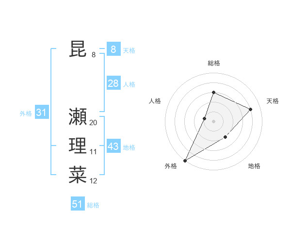 昆 瀬理菜さんを姓名の画数から五運を鑑定