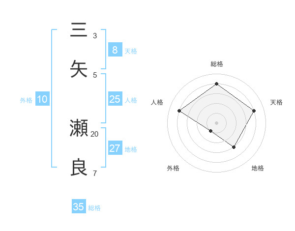 三矢 瀬良さんを姓名の画数から五運を鑑定