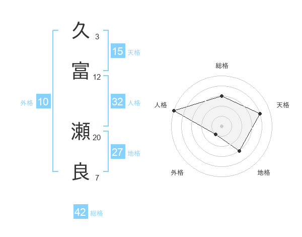 久富 瀬良さんを姓名の画数から五運を鑑定