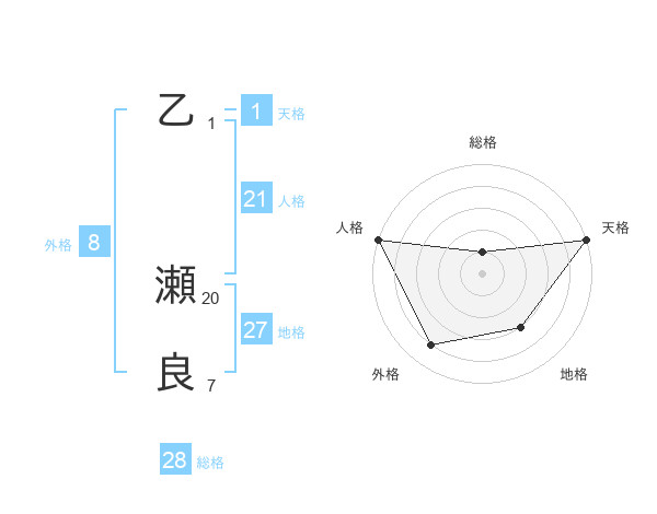 乙 瀬良さんの総格は28画の1点!