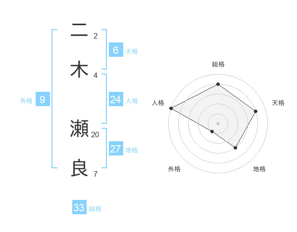 二木 瀬良さんを姓名の画数から五運を鑑定