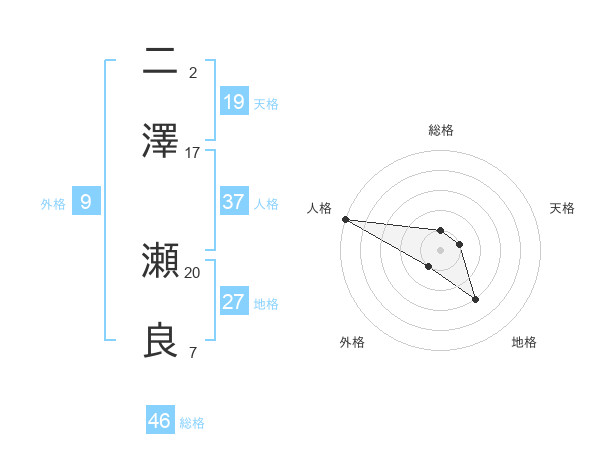 二澤 瀬良さんの人格は37画の5点!