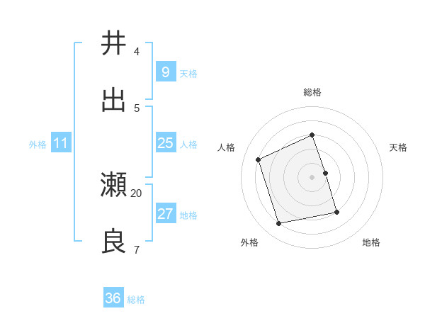 井出 瀬良さんの総格は36画の3点!