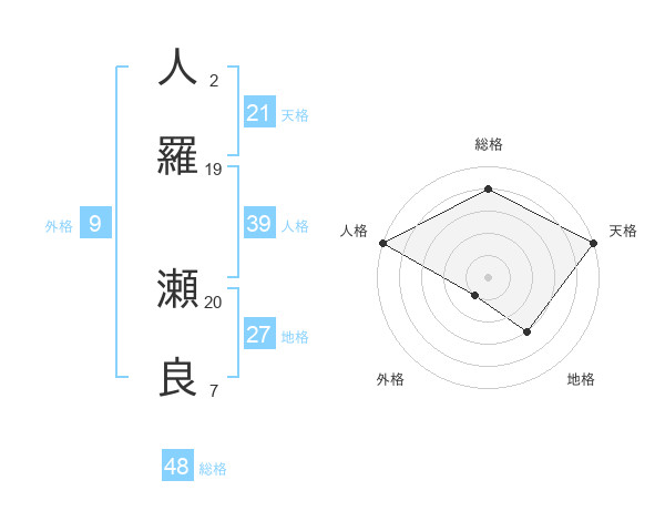 人羅 瀬良さんの地格は27画の3点!