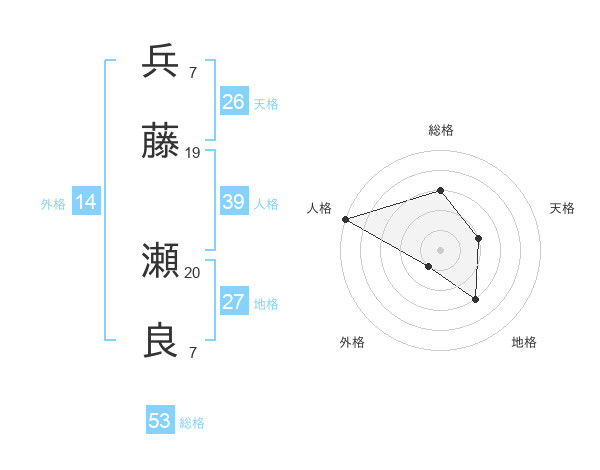 兵藤 瀬良さんの総格は53画の3点!