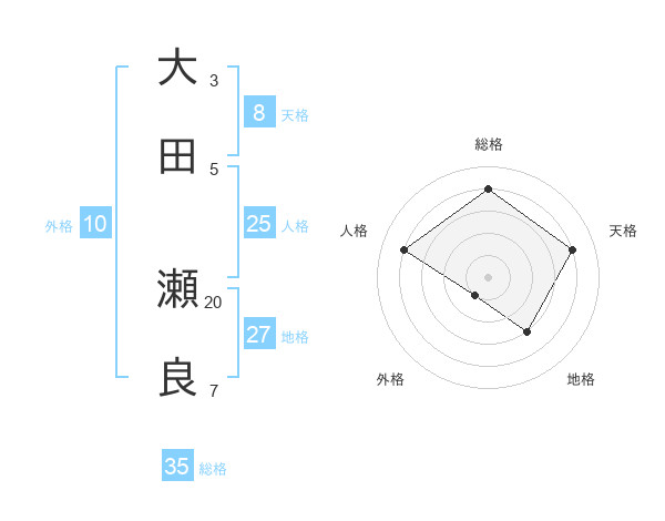 大田 瀬良さんを姓名の画数から五運を鑑定