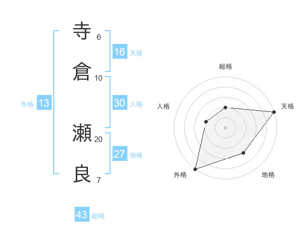 寺倉 瀬良さんの外格は13画の5点!