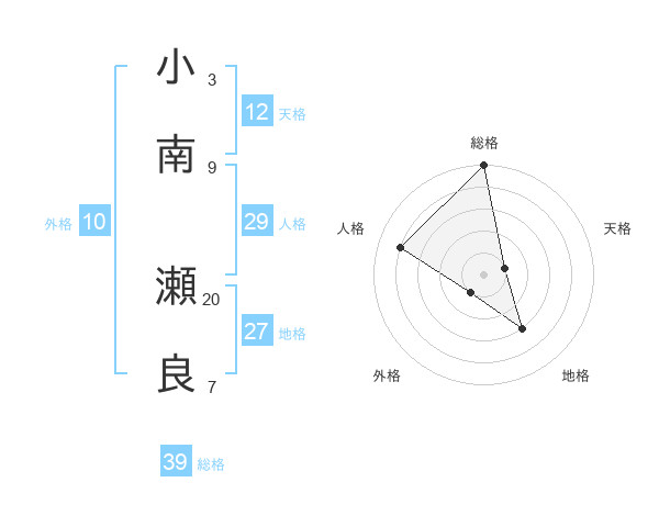 小南 瀬良さんを姓名の画数から五運を鑑定