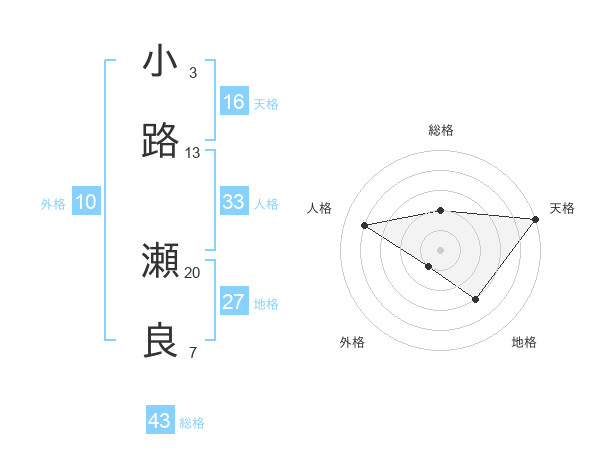小路 瀬良さんの総格は43画の2点!