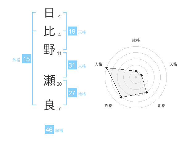 日比野 瀬良さんを姓名の画数から五運を鑑定