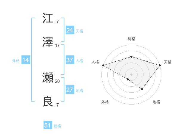 江澤 瀬良さんを姓名の画数から五運を鑑定