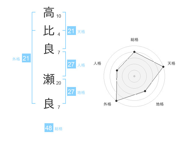 高比良 瀬良さんの天格は21画の5点!