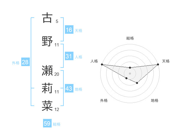 古野 瀬莉菜さんを姓名の画数から五運を鑑定