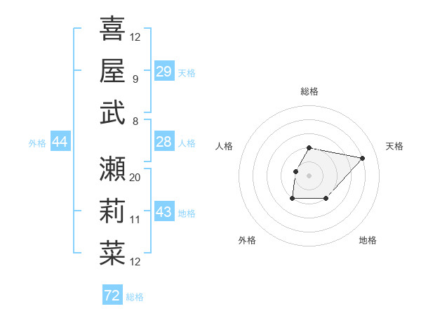 喜屋武 瀬莉菜さんの天格は29画の4点!