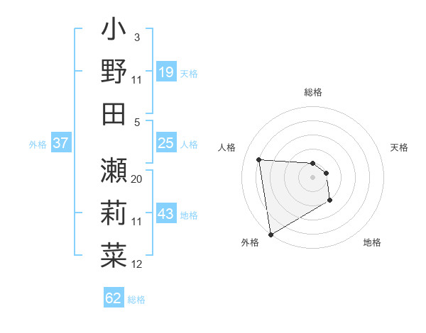 小野田 瀬莉菜さんを姓名の画数から五運を鑑定
