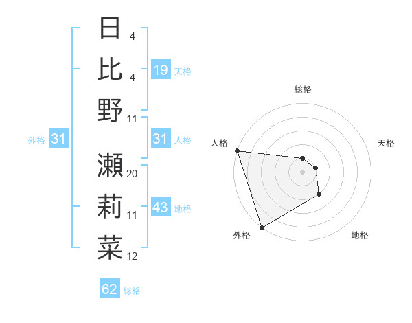 日比野 瀬莉菜さんを姓名の画数から五運を鑑定
