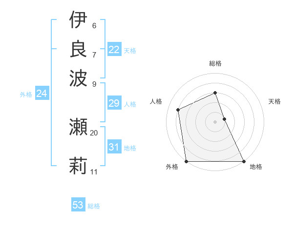 伊良波 瀬莉さんを姓名の画数から五運を鑑定
