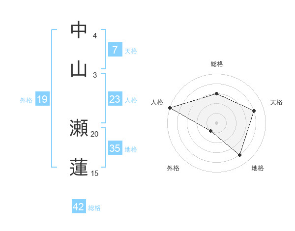 中山 瀬蓮さんを姓名の画数から五運を鑑定