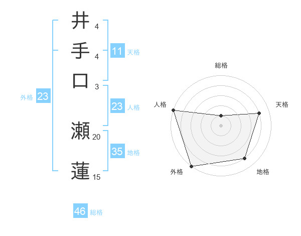 井手口 瀬蓮さんの外格は23画の5点!