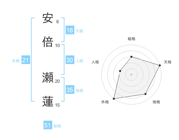 安倍 瀬蓮さんを姓名の画数から五運を鑑定